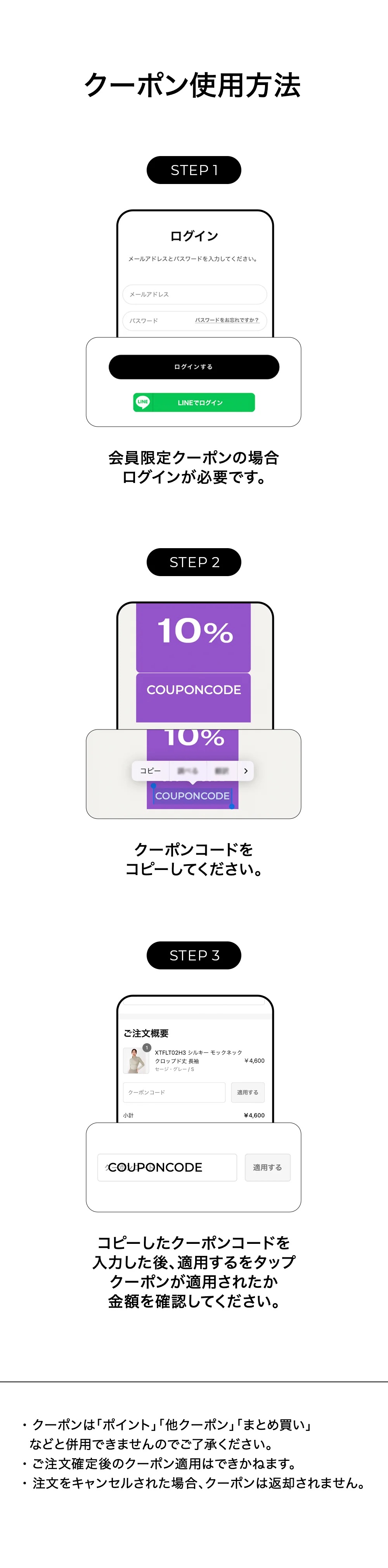 ご注文手続きの際に、「クーポンコード入力欄」に貼り付けてください。